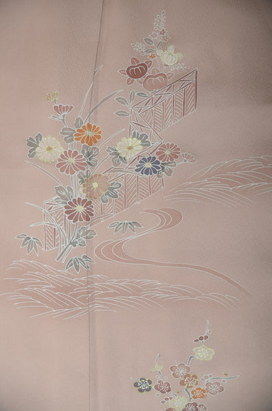| This item is from a kimono auction where only a limited number of professional kimono buyers can participate. It is a one of a kind. Traditional kimono is likened to "wearable art" since dozens of artisans' techniques are used in one kimono. These traditional techniques and designs are breathtakingly beautiful and it is hard to find words to describe them. | |