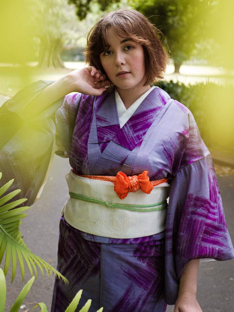 Mia Kimono yukata contest 2020 I started wearing kimono after a trip to Japan and they always make me feel beautiful! In this photo, I'm wearing a meisen sha-weave kimono from the Taisho era. The quality is shown in how long Kimono can last! Thank you for your support!