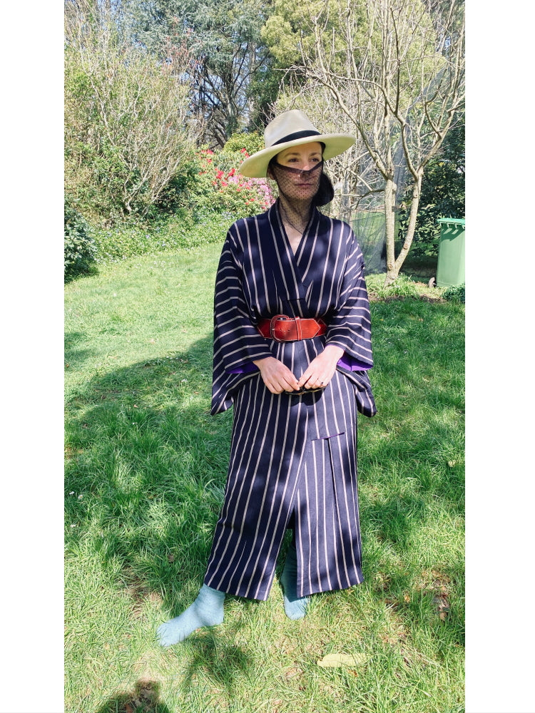 comment : Imogen wears kimono's everyday of her life - she loves the freedom, and the fit and the exquisite beauty - everywhere she goes she is stopped in the street by people loving her clothes.