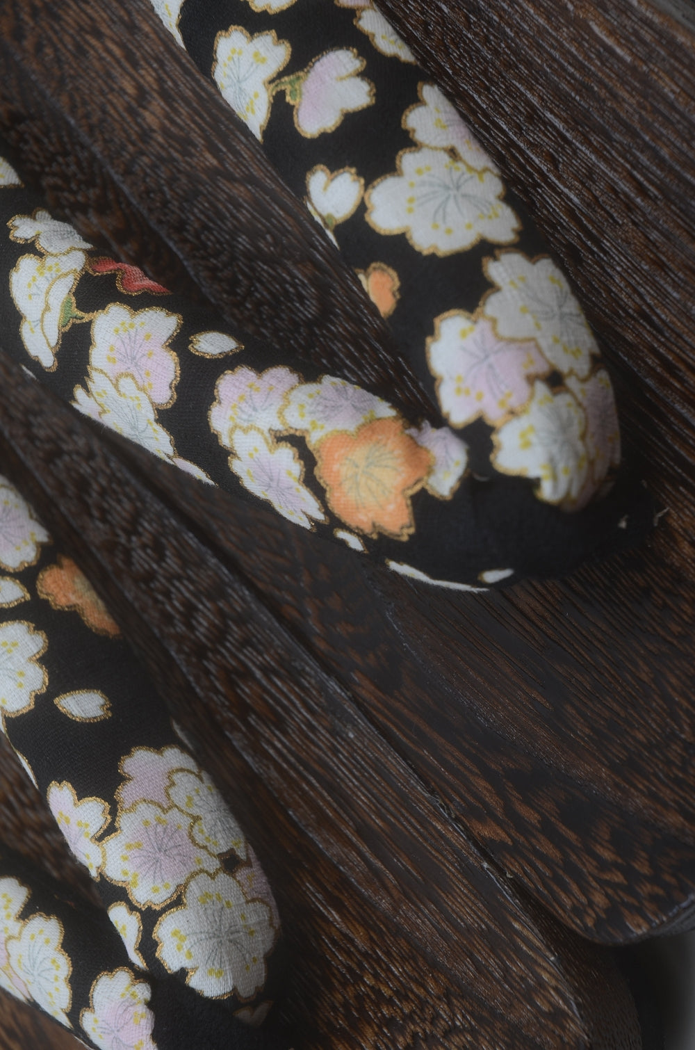 | Geta sandals are made from wood with rubber soles and the sandal thongs are made from remnants of kimono fabric. Sandals have a tighter fit compared to normal sandals, so please read the page "Measuring Tips" to choose the correct size. | |