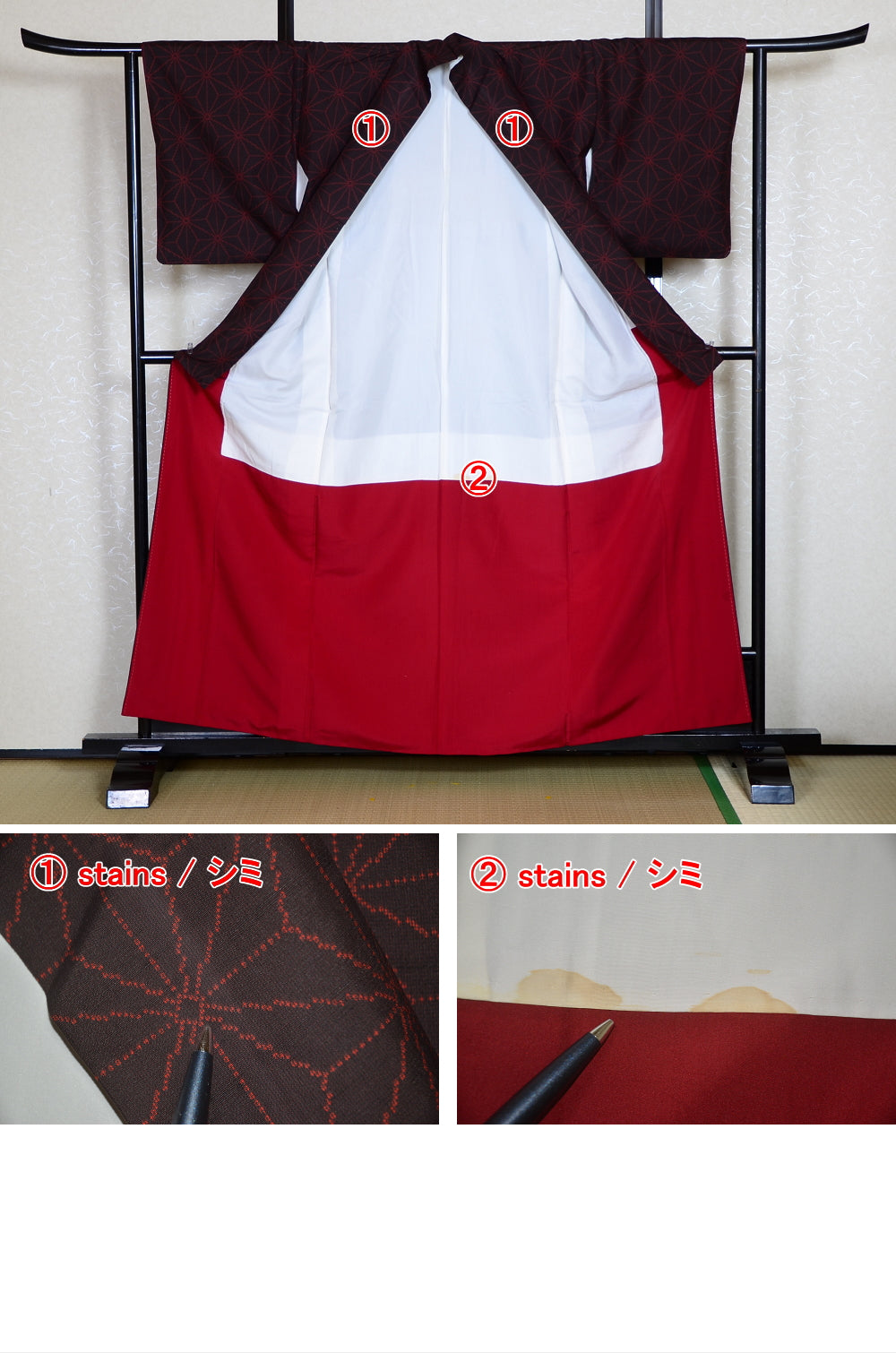 | Very good condition of all the used kimono. We can see a little signs of wear. There are small stains on it but not mind too much. You can wear it. | |