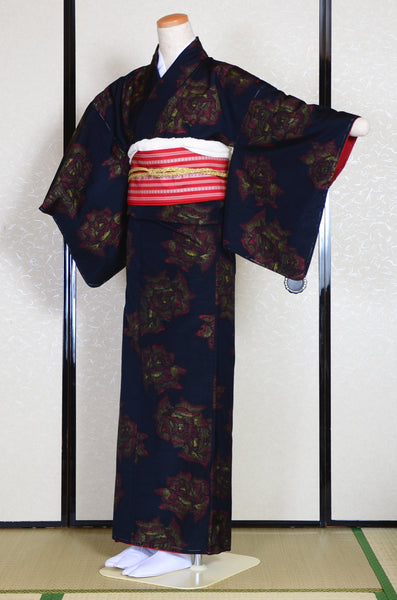 | This item is from a kimono auction where only a limited number of professional kimono buyers can participate. It is a one of a kind. Traditional kimono is likened to "wearable art" since dozens of artisans' techniques are used in one kimono. These traditional techniques and designs are breathtakingly beautiful and it is hard to find words to describe them. | |