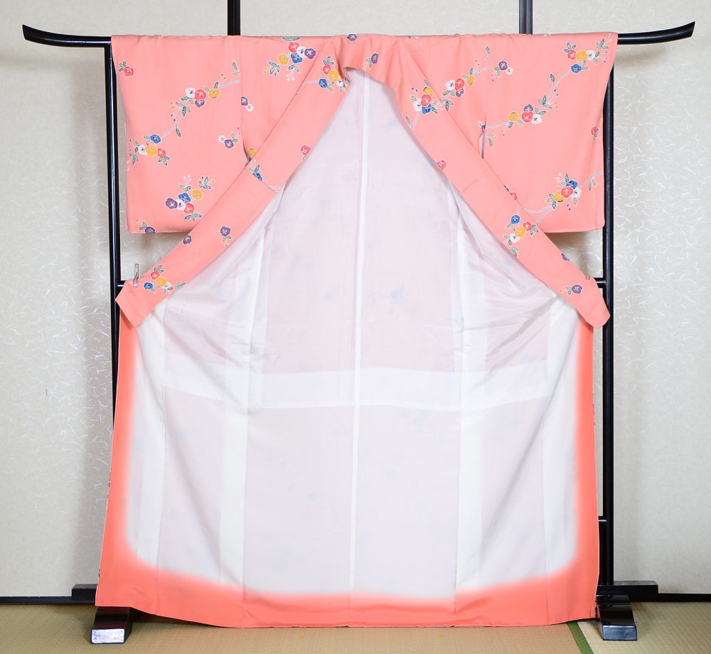 | This item is from a kimono auction where only a limited number of professional kimono buyers can participate. It is a one of a kind. Traditional kimono is likened to "wearable art" since dozens of artisans' techniques are used in one kimono. These traditional techniques and designs are breathtakingly beautiful and it is hard to find words to describe them. | |