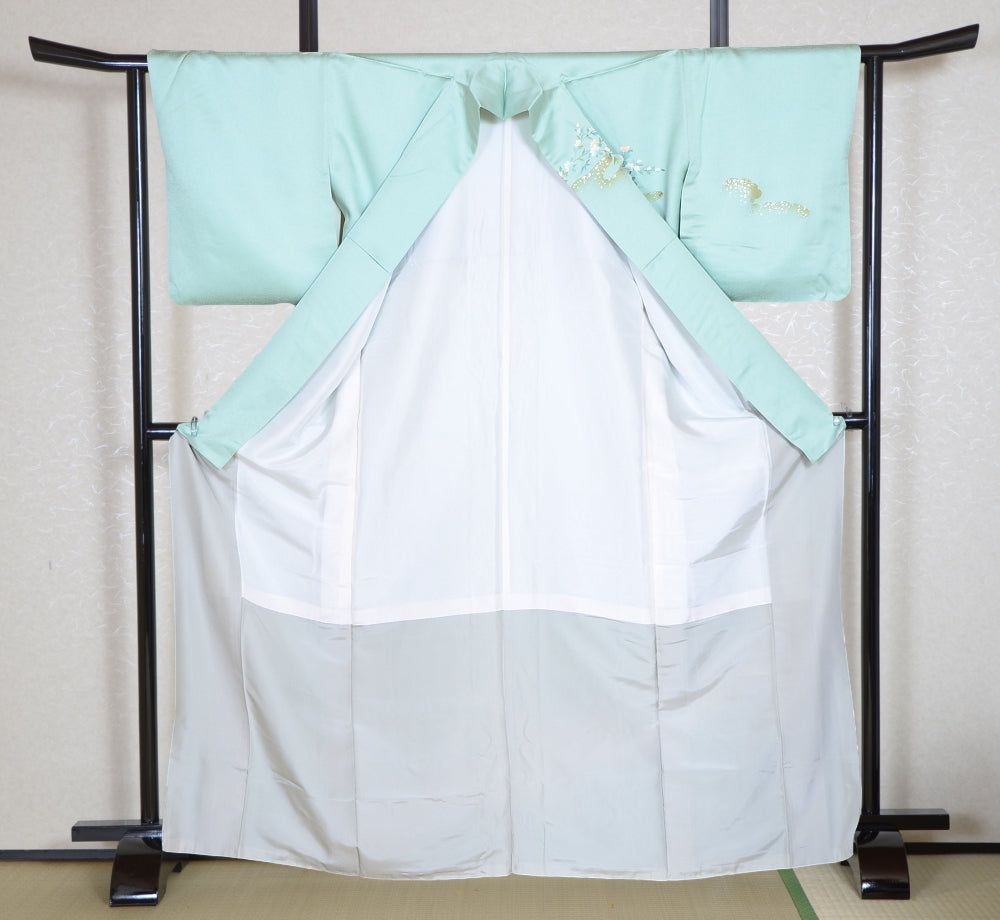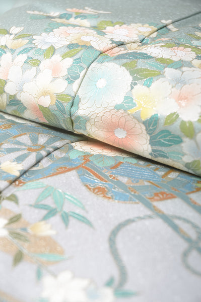 | All techniques (weaving, dyeing, embroidery) are great. The patterns and fabrics are both wonderful. In addition, it is kimono which we selected in our shop standard. Reference price (Brand new): over 3000US$ | |