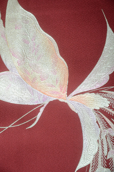 This item is from a kimono auction where only a limited number of professional kimono buyers can participate. It is a one of a kind. Traditional kimono is likened to "wearable art" since dozens of artisans' techniques are used in one kimono. These traditional techniques and designs are breathtakingly beautiful and it is hard to find words to describe them.
