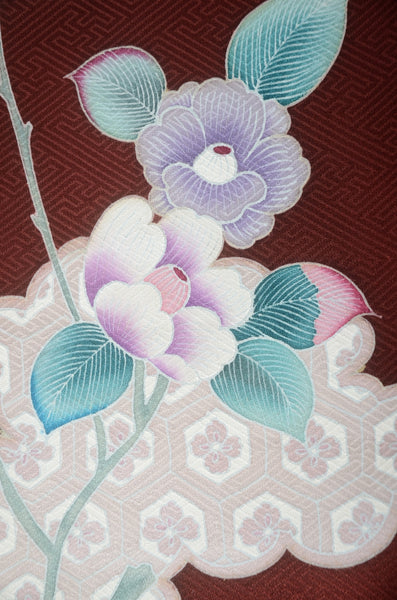 | This item is from a kimono auction where only a limited number of professional kimono buyers can participate. It is a one of a kind. Traditional kimono is likened to "wearable art" since dozens of artisans' techniques are used in one kimono. These traditional techniques and designs are breathtakingly beautiful and it is hard to find words to describe them. | |