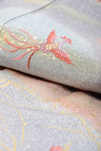 | All techniques (weaving, dyeing, embroidery) are great. The patterns and fabrics are both wonderful. In addition, it is kimono which we selected in our shop standard. Reference price (Brand new): over 3000US$ | |