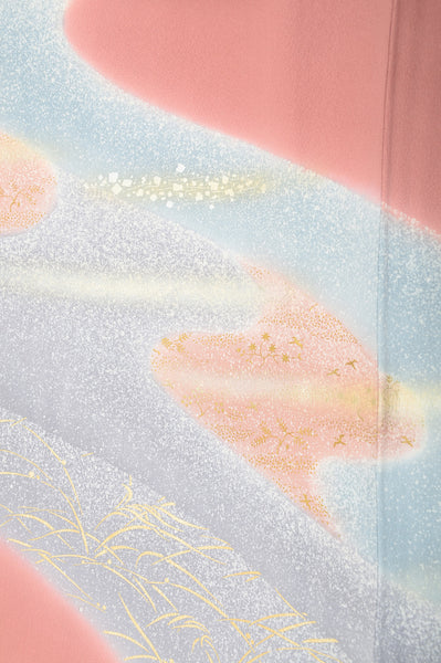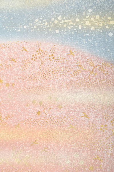 | This item is from a kimono auction where only a limited number of professional kimono buyers can participate. It is a one of a kind. Traditional kimono is likened to "wearable art" since dozens of artisans' techniques are used in one kimono. These traditional techniques and designs are breathtakingly beautiful and it is hard to find words to describe them. | |