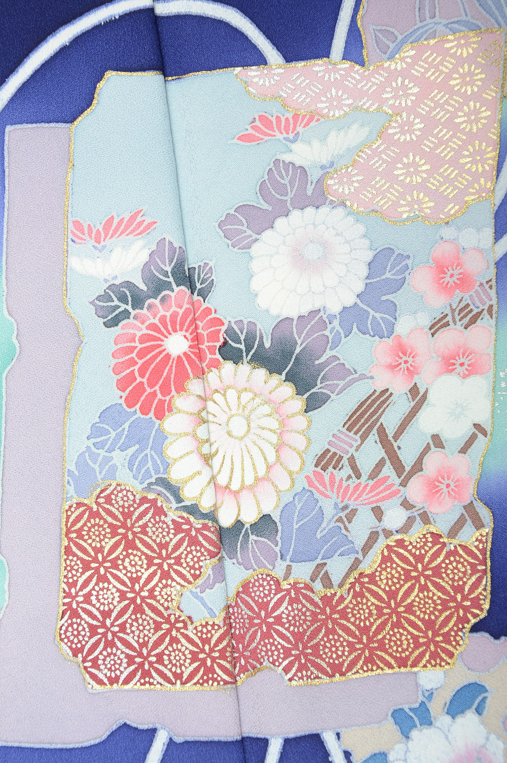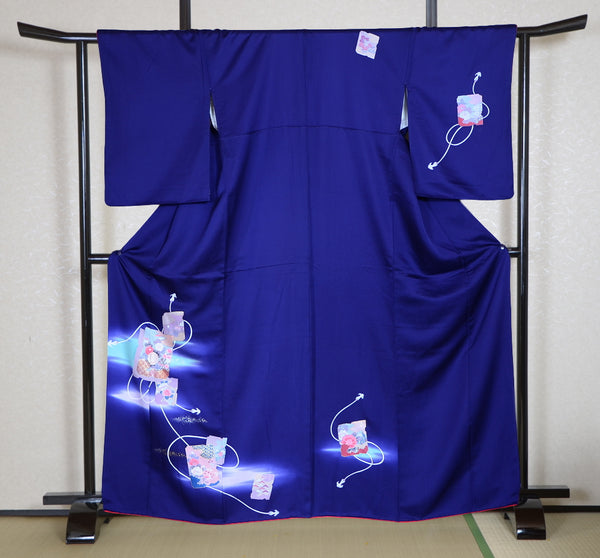 | This item is from a kimono auction where only a limited number of professional kimono buyers can participate. It is a one of a kind. Traditional kimono is likened to "wearable art" since dozens of artisans' techniques are used in one kimono. These traditional techniques and designs are breathtakingly beautiful and it is hard to find words to describe them. | |