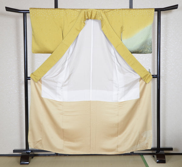 | This item is from a kimono auction where only a limited number of professional kimono buyers can participate. It is a one of a kind. Traditional kimono is likened to "wearable art" since dozens of artisans' techniques are used in one kimono. These traditional techniques and designs are breathtakingly beautiful and it is hard to find words to describe them. | ||||||||||||