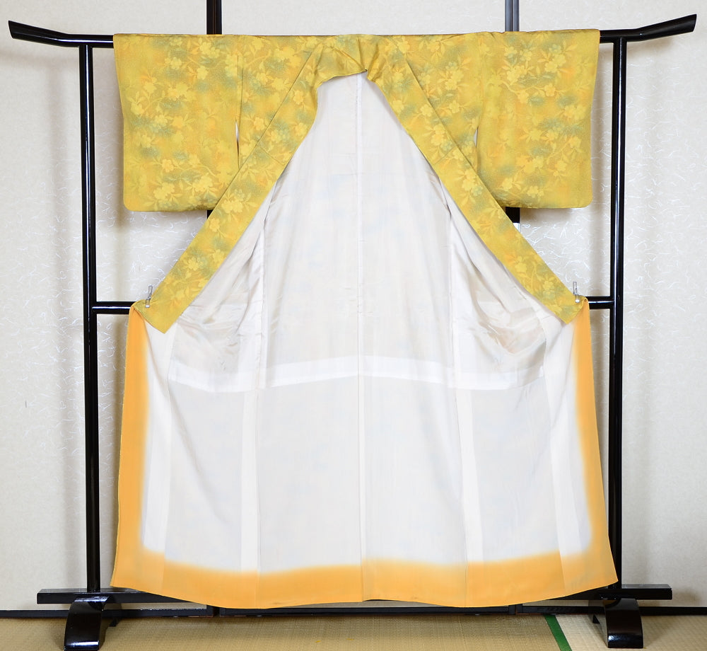 | This item is from a kimono auction where only a limited number of professional kimono buyers can participate. It is a one of a kind. Traditional kimono is likened to "wearable art" since dozens of artisans' techniques are used in one kimono. These traditional techniques and designs are breathtakingly beautiful and it is hard to find words to describe them. | |