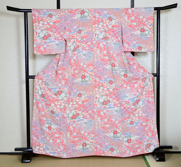 | This item is from a kimono auction where only a limited number of professional kimono buyers can participate. It is a one of a kind. Traditional kimono is likened to "wearable art" since dozens of artisans' techniques are used in one kimono. These traditional techniques and designs are breathtakingly beautiful and it is hard to find words to describe them. | |