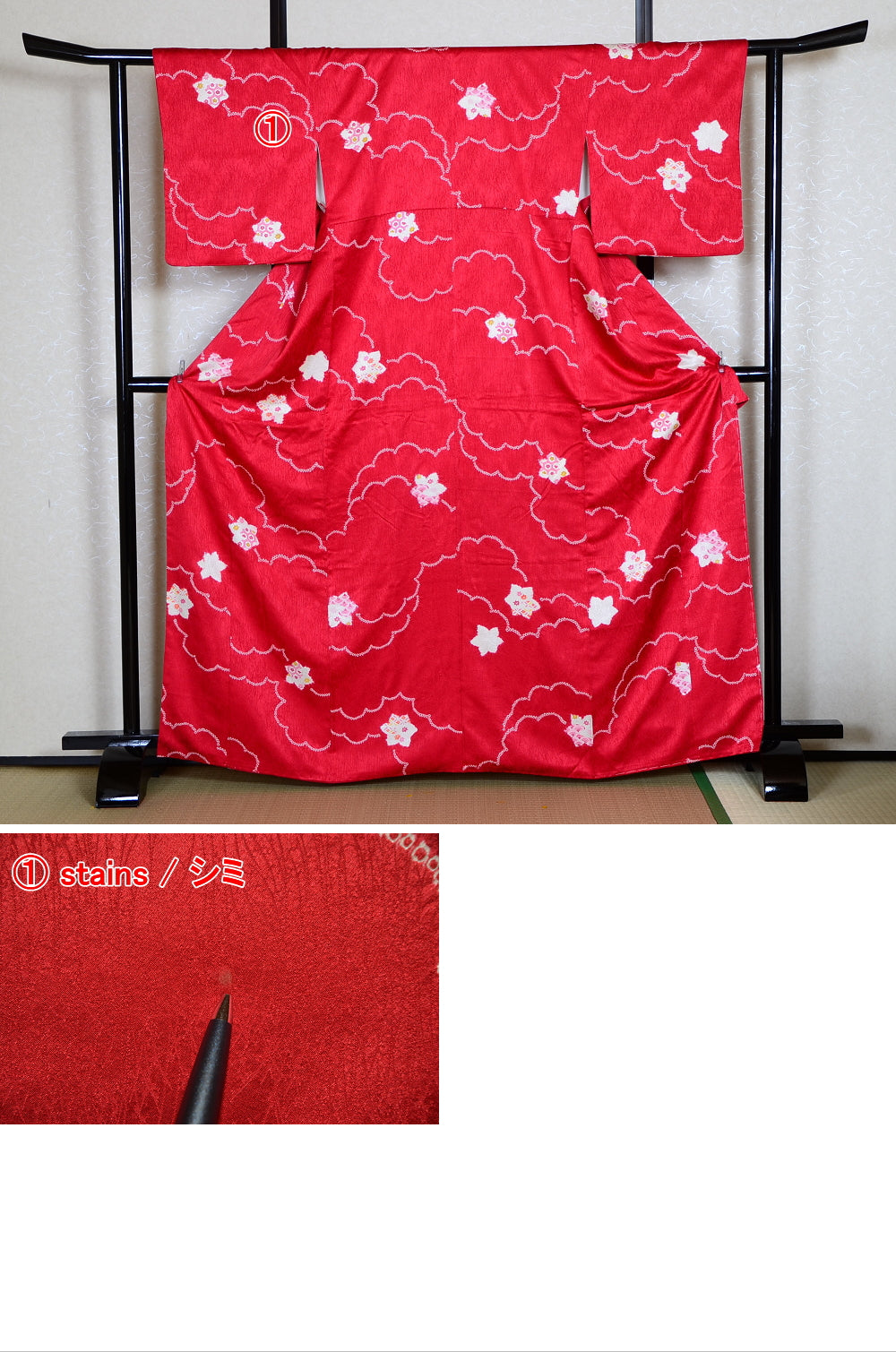 | Very good condition of all the used kimono. We can see a little signs of wear. There are small stains on it but not mind too much. You can wear it. | |