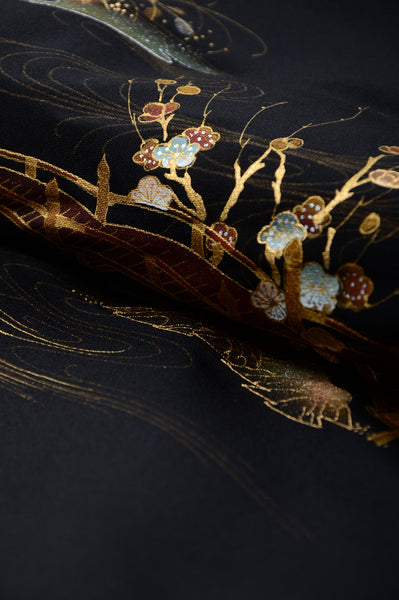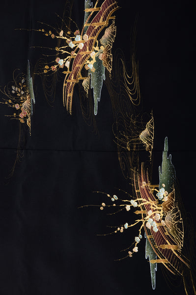 | This item is from a kimono auction where only a limited number of professional kimono buyers can participate. It is a one of a kind. Traditional kimono is likened to "wearable art" since dozens of artisans' techniques are used in one kimono. These traditional techniques and designs are breathtakingly beautiful and it is hard to find words to describe them. | |