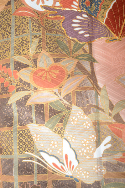 This item is from a kimono auction where only a limited number of professional kimono buyers can participate. It is a one of a kind. Traditional kimono is likened to "wearable art" since dozens of artisans' techniques are used in one kimono. These traditional techniques and designs are breathtakingly beautiful and it is hard to find words to describe them.