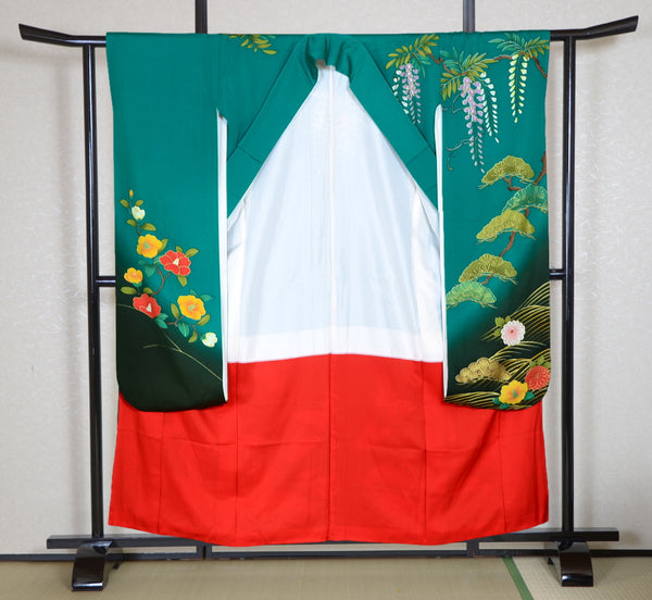 This item is from a kimono auction where only a limited number of professional kimono buyers can participate. It is a one of a kind. Traditional kimono is likened to "wearable art" since dozens of artisans' techniques are used in one kimono. These traditional techniques and designs are breathtakingly beautiful and it is hard to find words to describe them.