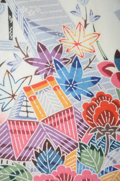 | This item is from a kimono auction where only a limited number of professional kimono buyers can participate. It is a one of a kind. Traditional kimono is likened to "wearable art" since dozens of artisans' techniques are used in one kimono. These traditional techniques and designs are breathtakingly beautiful and it is hard to find words to describe them. | |