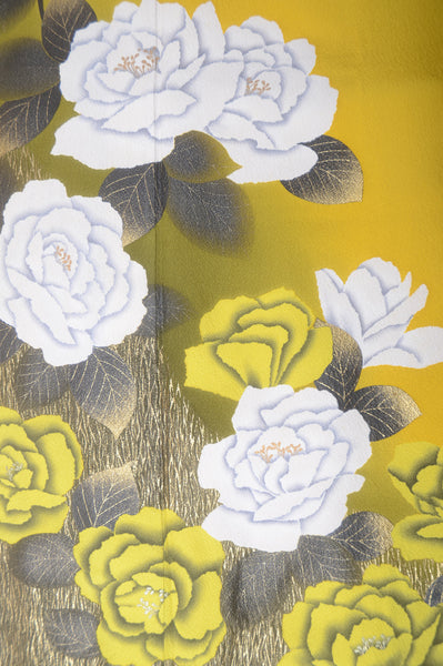 This item is from a kimono auction where only a limited number of professional kimono buyers can participate. It is a one of a kind. Traditional kimono is likened to "wearable art" since dozens of artisans' techniques are used in one kimono. These traditional techniques and designs are breathtakingly beautiful and it is hard to find words to describe them.