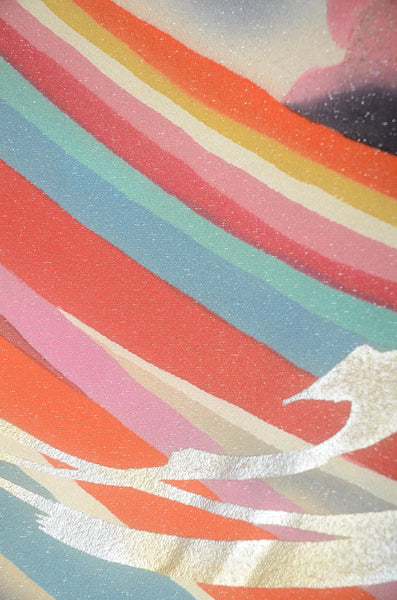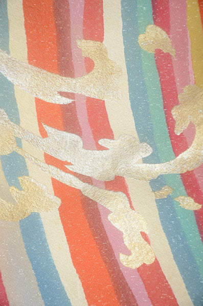 | This item is from a kimono auction where only a limited number of professional kimono buyers can participate. It is a one of a kind. Traditional kimono is likened to "wearable art" since dozens of artisans' techniques are used in one kimono. These traditional techniques and designs are breathtakingly beautiful and it is hard to find words to describe them. | |