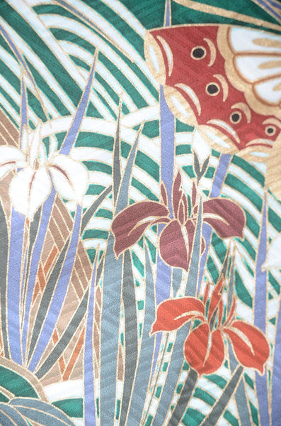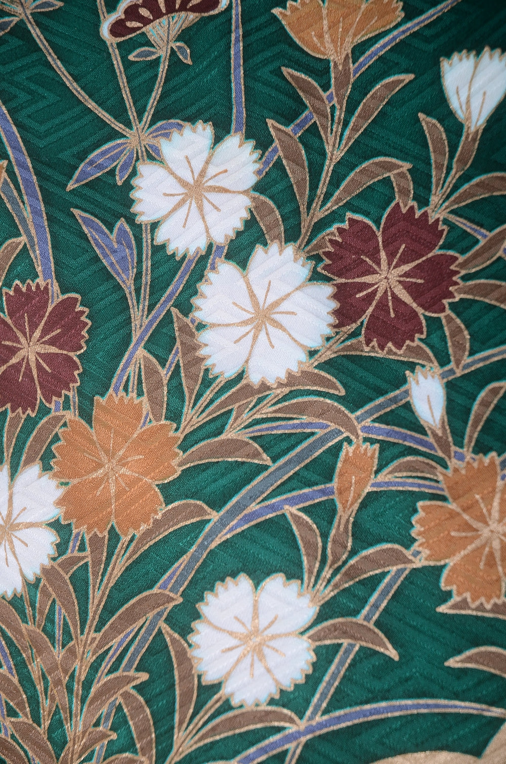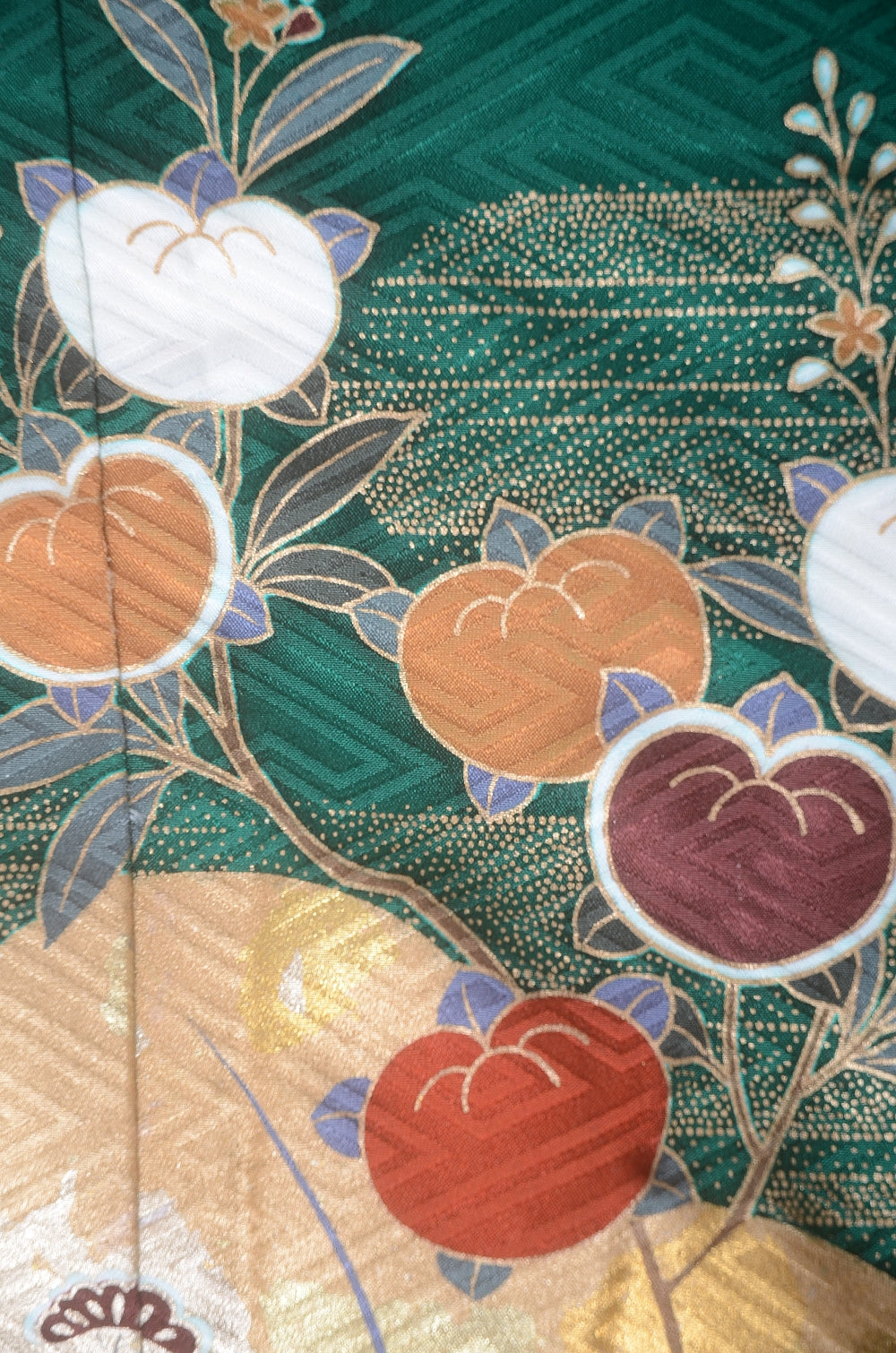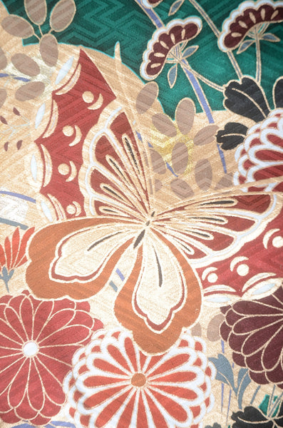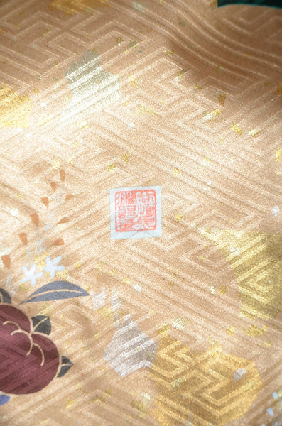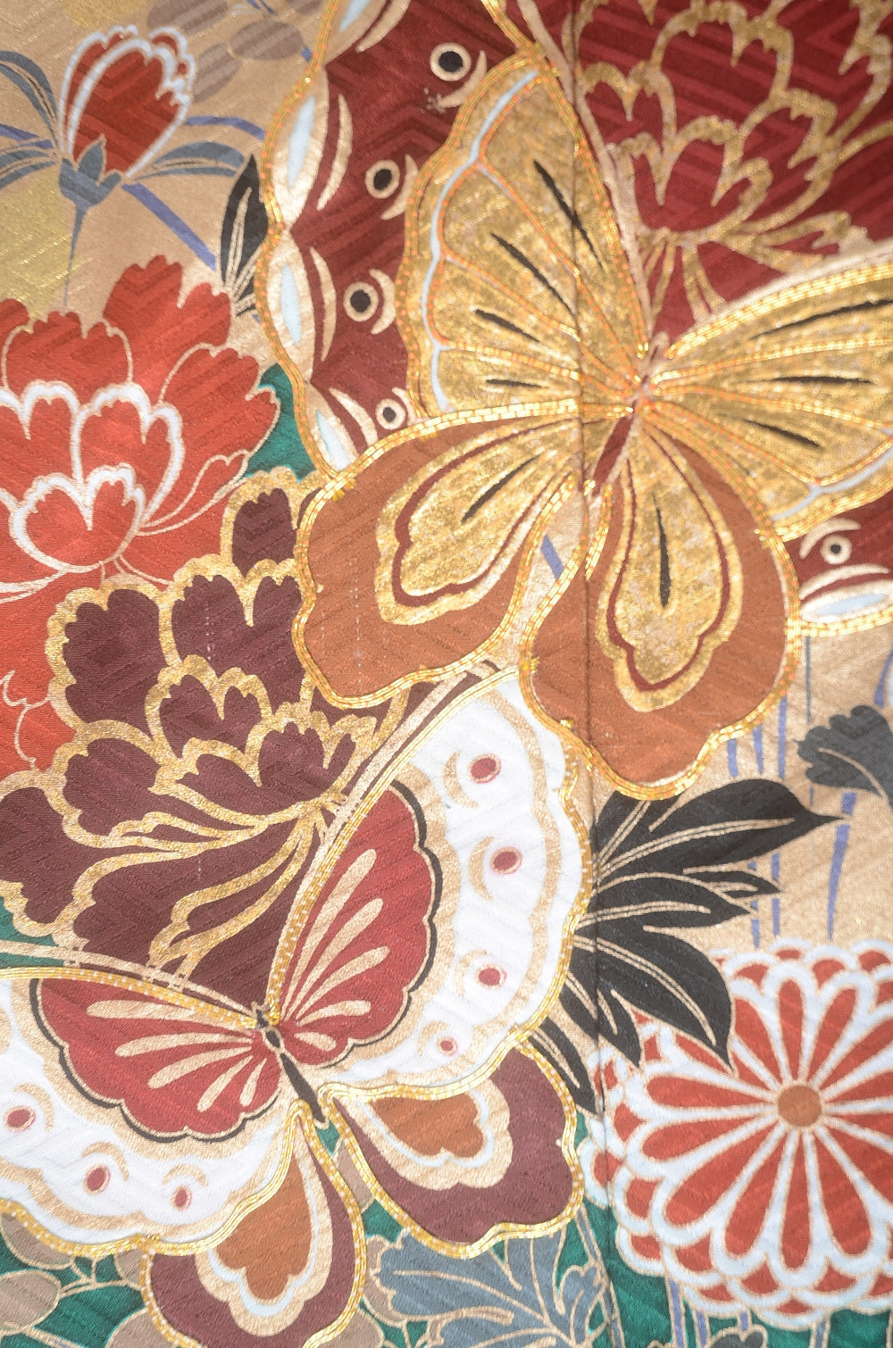| This item is from a kimono auction where only a limited number of professional kimono buyers can participate. It is a one of a kind. Traditional kimono is likened to "wearable art" since dozens of artisans' techniques are used in one kimono. These traditional techniques and designs are breathtakingly beautiful and it is hard to find words to describe them. | |