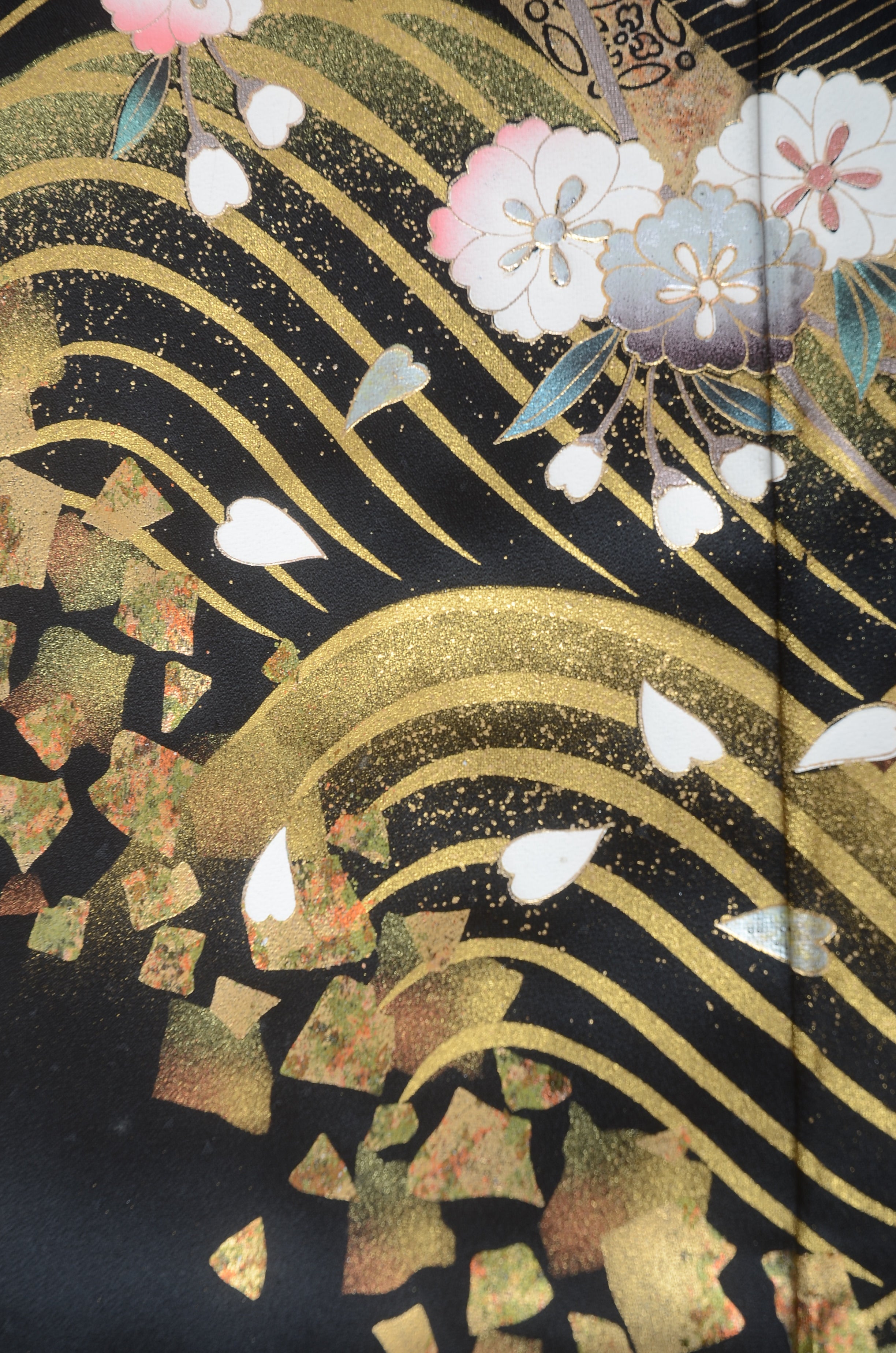 | This item is from a kimono auction where only a limited number of professional kimono buyers can participate. It is a one of a kind. Traditional kimono is likened to "wearable art" since dozens of artisans' techniques are used in one kimono. These traditional techniques and designs are breathtakingly beautiful and it is hard to find words to describe them. | |