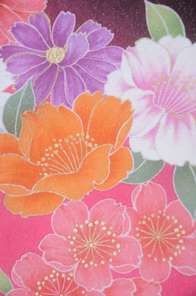 | This item is from a kimono auction where only a limited number of professional kimono buyers can participate. It is a one of a kind. Traditional kimono is likened to "wearable art" since dozens of artisans' techniques are used in one kimono. These traditional techniques and designs are breathtakingly beautiful and it is hard to find words to describe them. | |