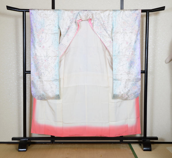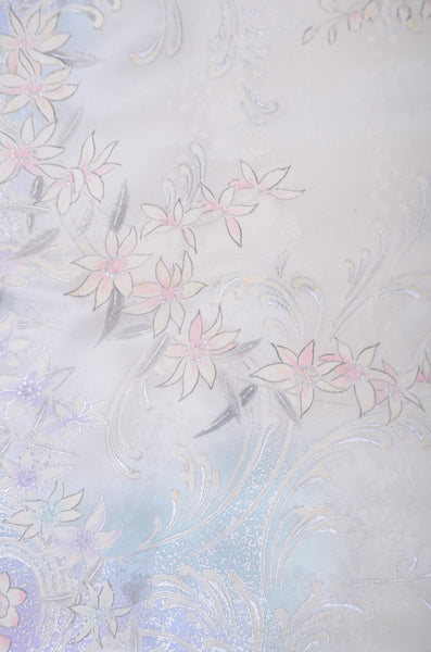 | This item is from a kimono auction where only a limited number of professional kimono buyers can participate. It is a one of a kind. Traditional kimono is likened to "wearable art" since dozens of artisans' techniques are used in one kimono. These traditional techniques and designs are breathtakingly beautiful and it is hard to find words to describe them. | |