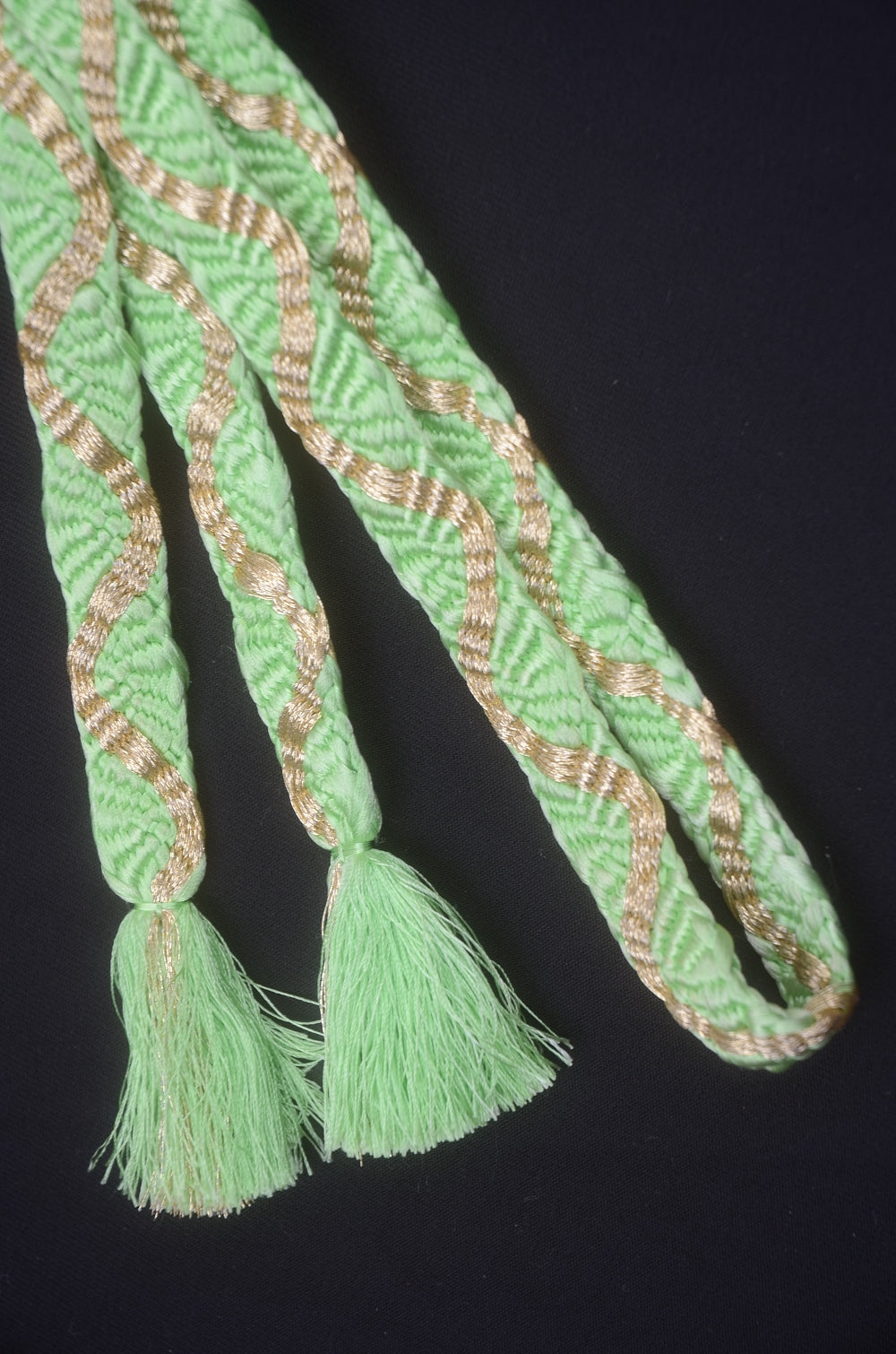 | Obi-jime is accessories for obi belts. They bring out the beauty of your obi belt and traditional kimono. - A colorful rope for the obi belt that helps it keep its shape. - Also serves as a decoration around the obi belt. | |