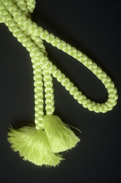 | Obi-jime is accessories for obi belts. They bring out the beauty of your obi belt and traditional kimono. - A colorful rope for the obi belt that helps it keep its shape. - Also serves as a decoration around the obi belt. | |