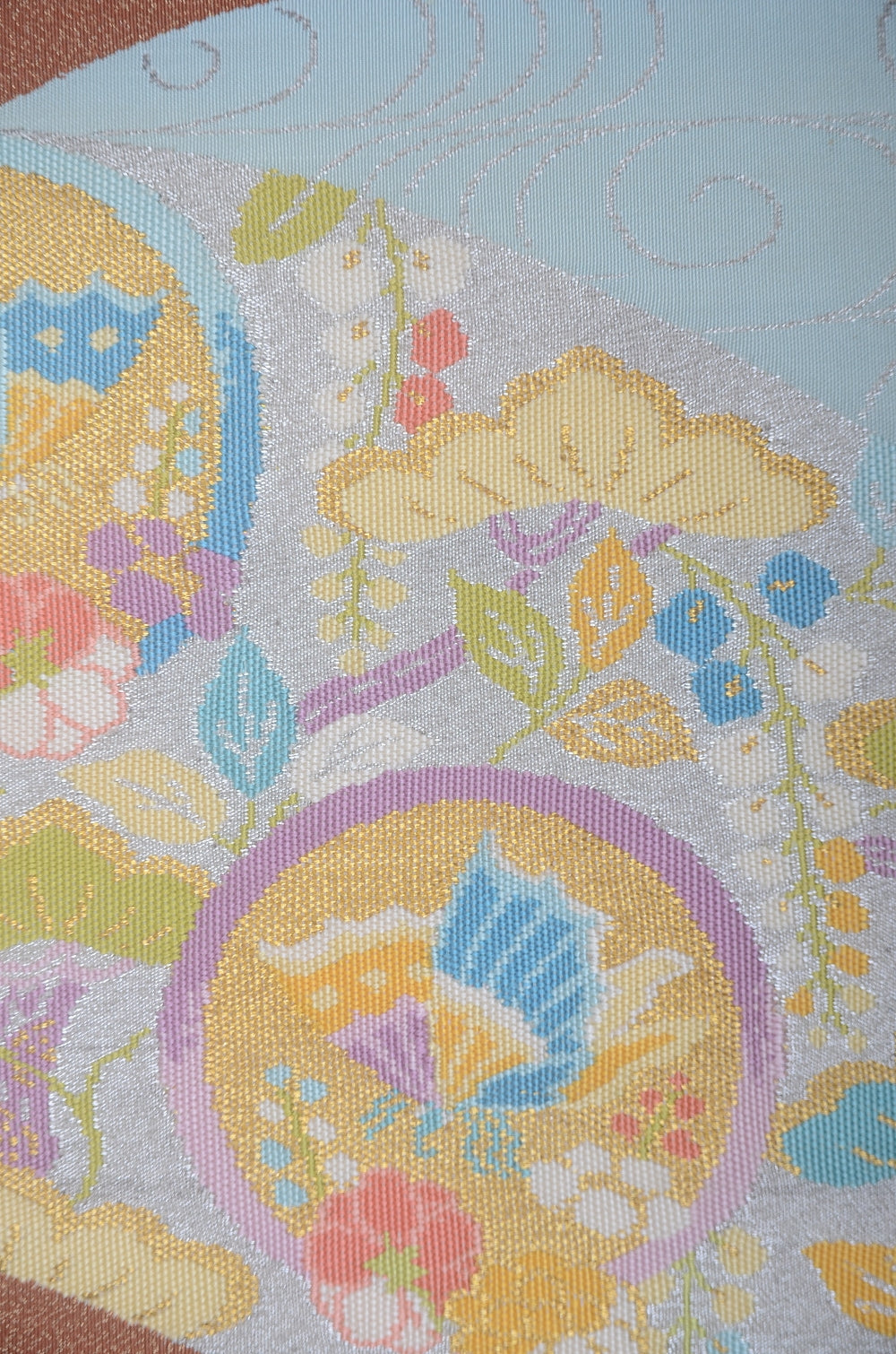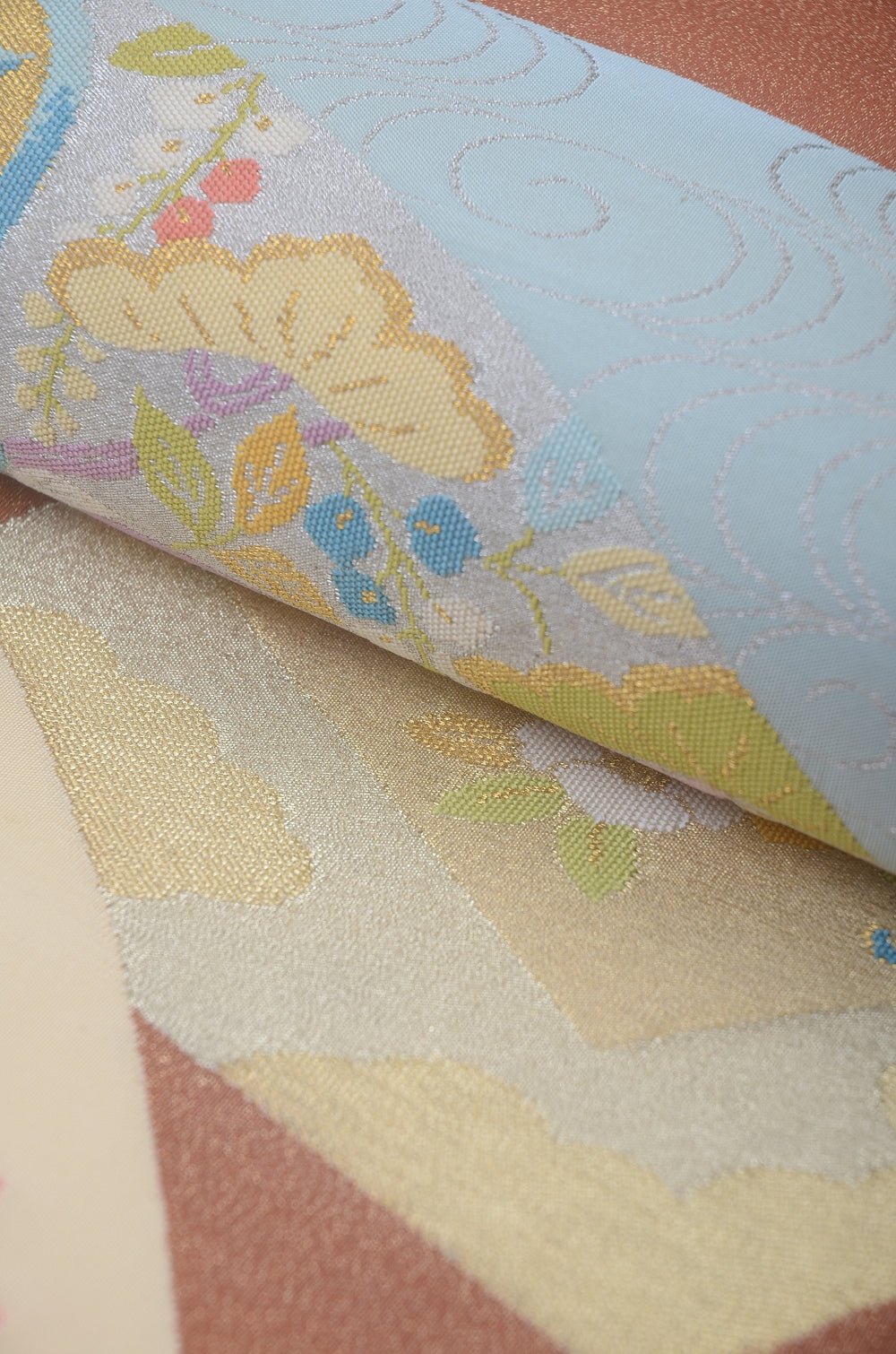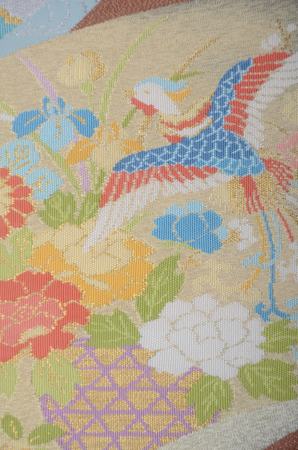 | Traditional kimono obi belts are decorated with gorgeous and artistic designs all over. Very wide obi belts which need to be folded in half when you tie them. |