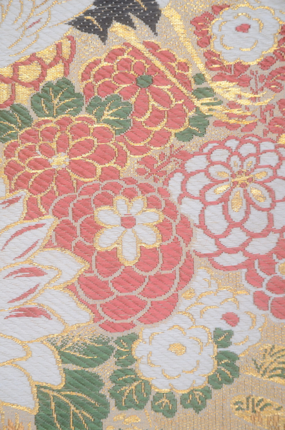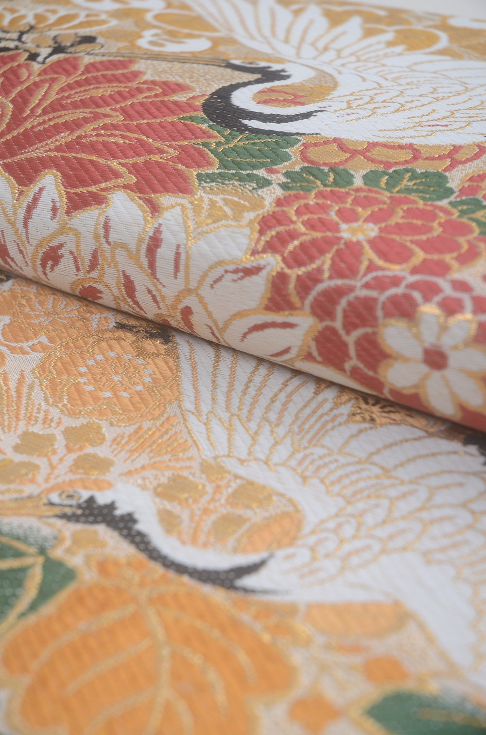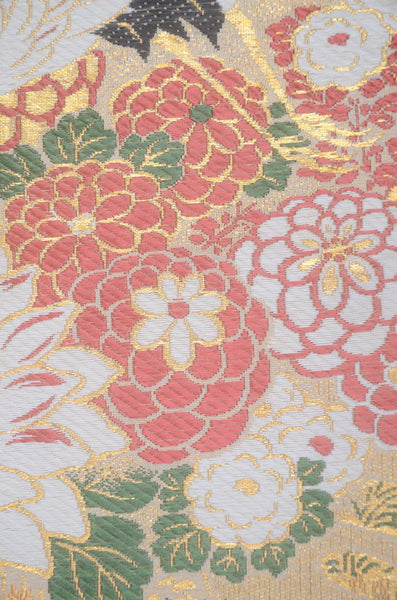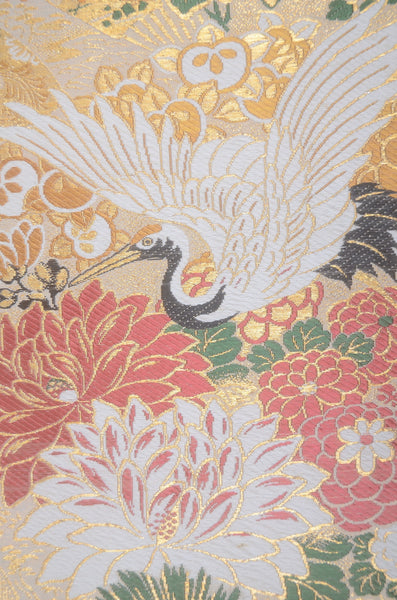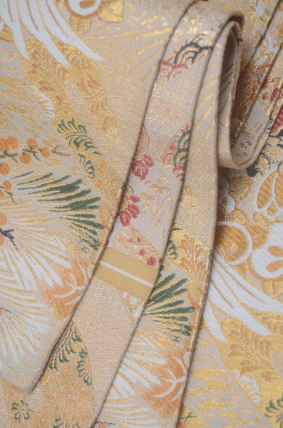 | Traditional kimono obi belts are decorated with gorgeous and artistic designs all over. Very wide obi belts which need to be folded in half when you tie them. |