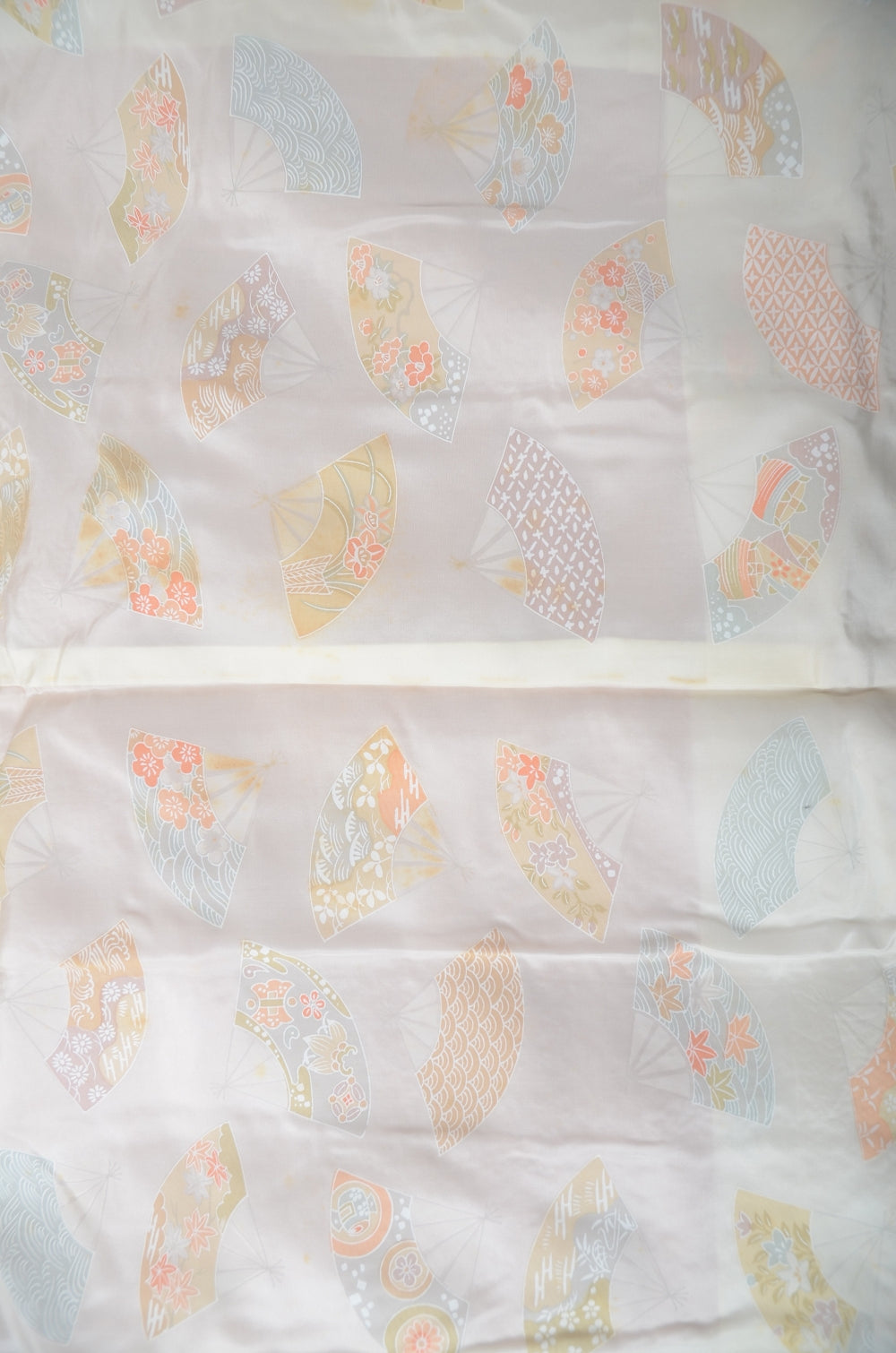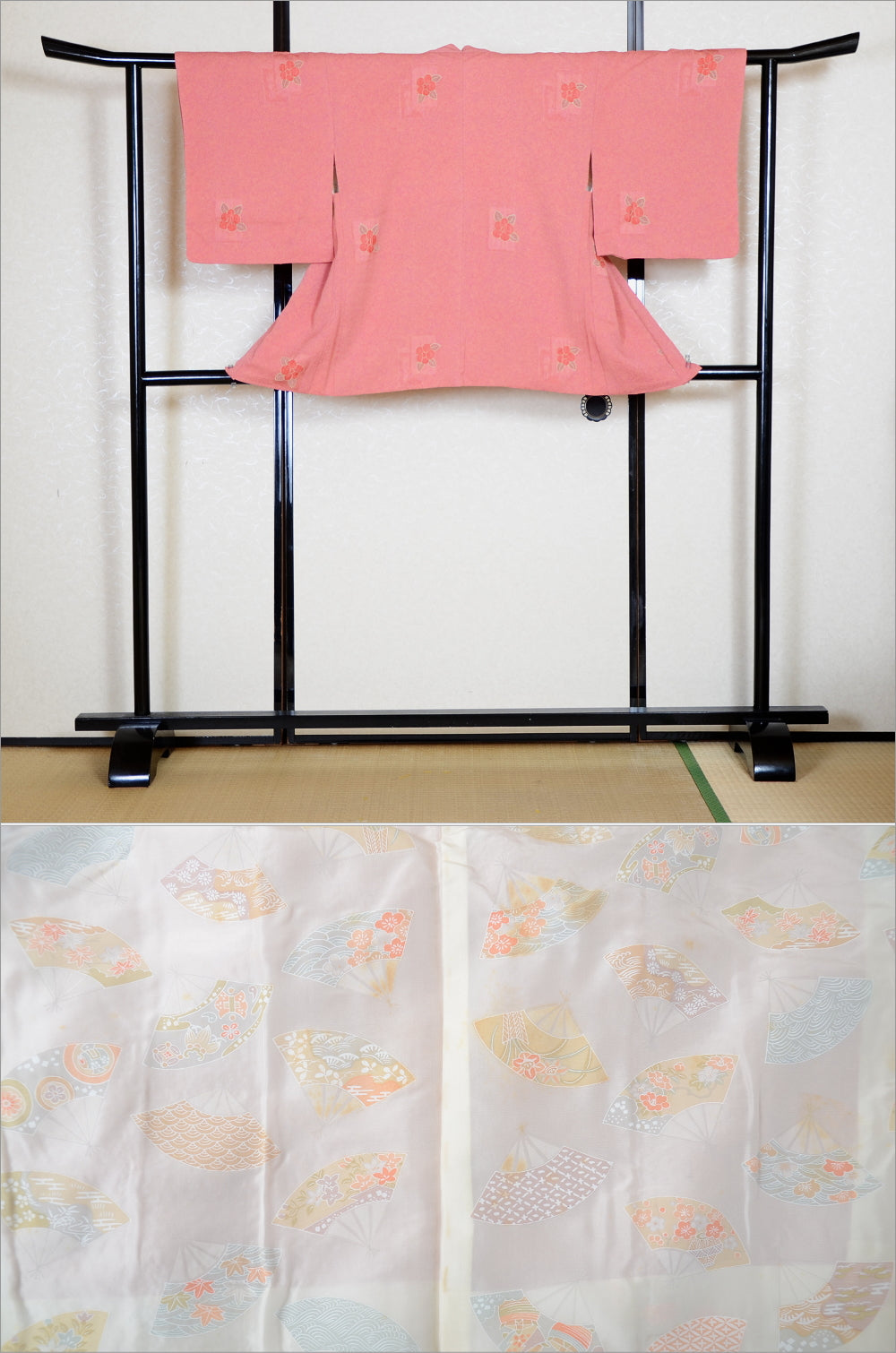 | Very good condition of all the used kimono. We can see a little signs of wear. There are small stains on it but not mind too much. You can wear it. | |