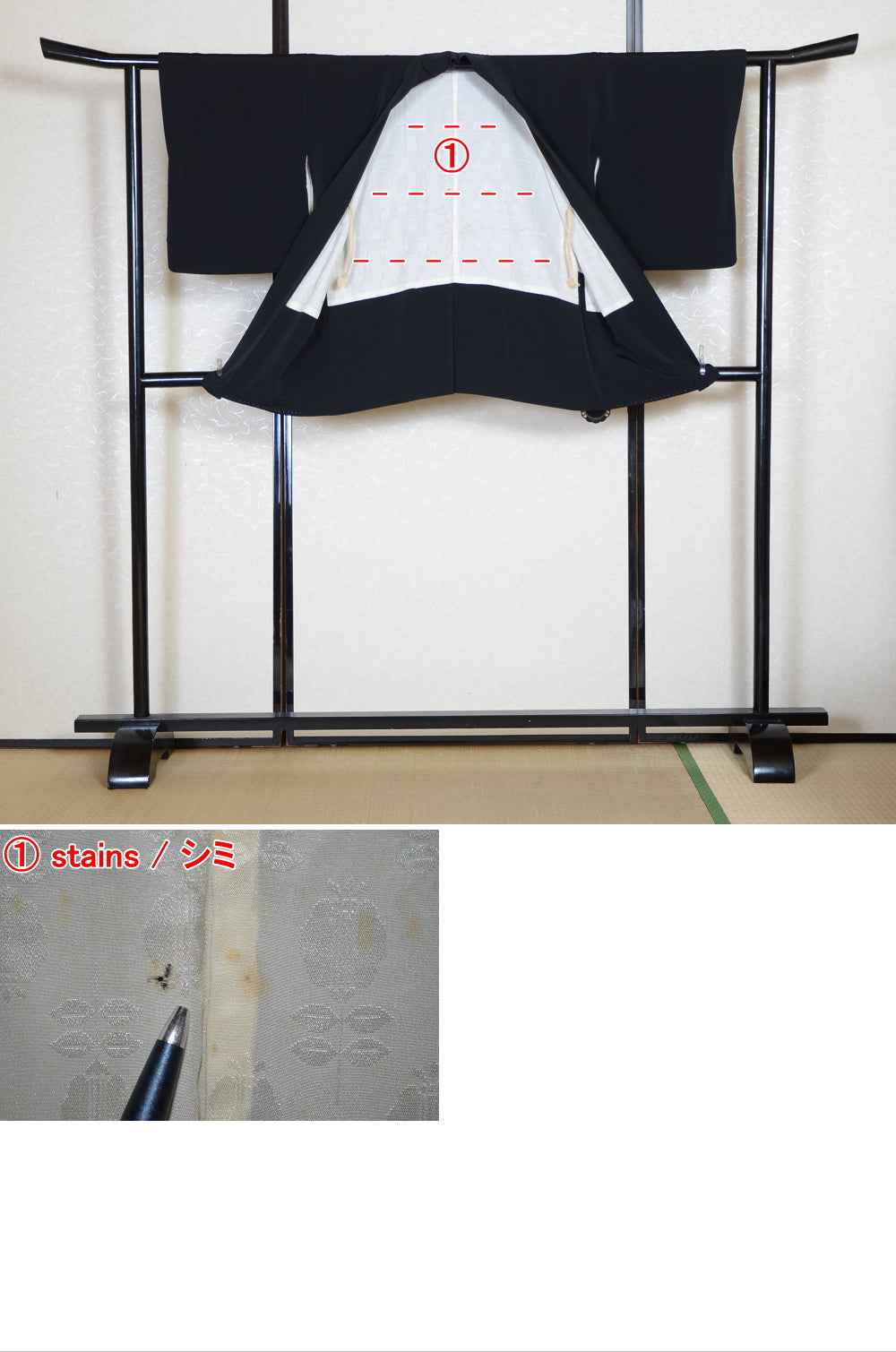 Very good condition of all the used kimono. We can see a little signs of wear. There are small stains on it but not mind too much. You can wear it.