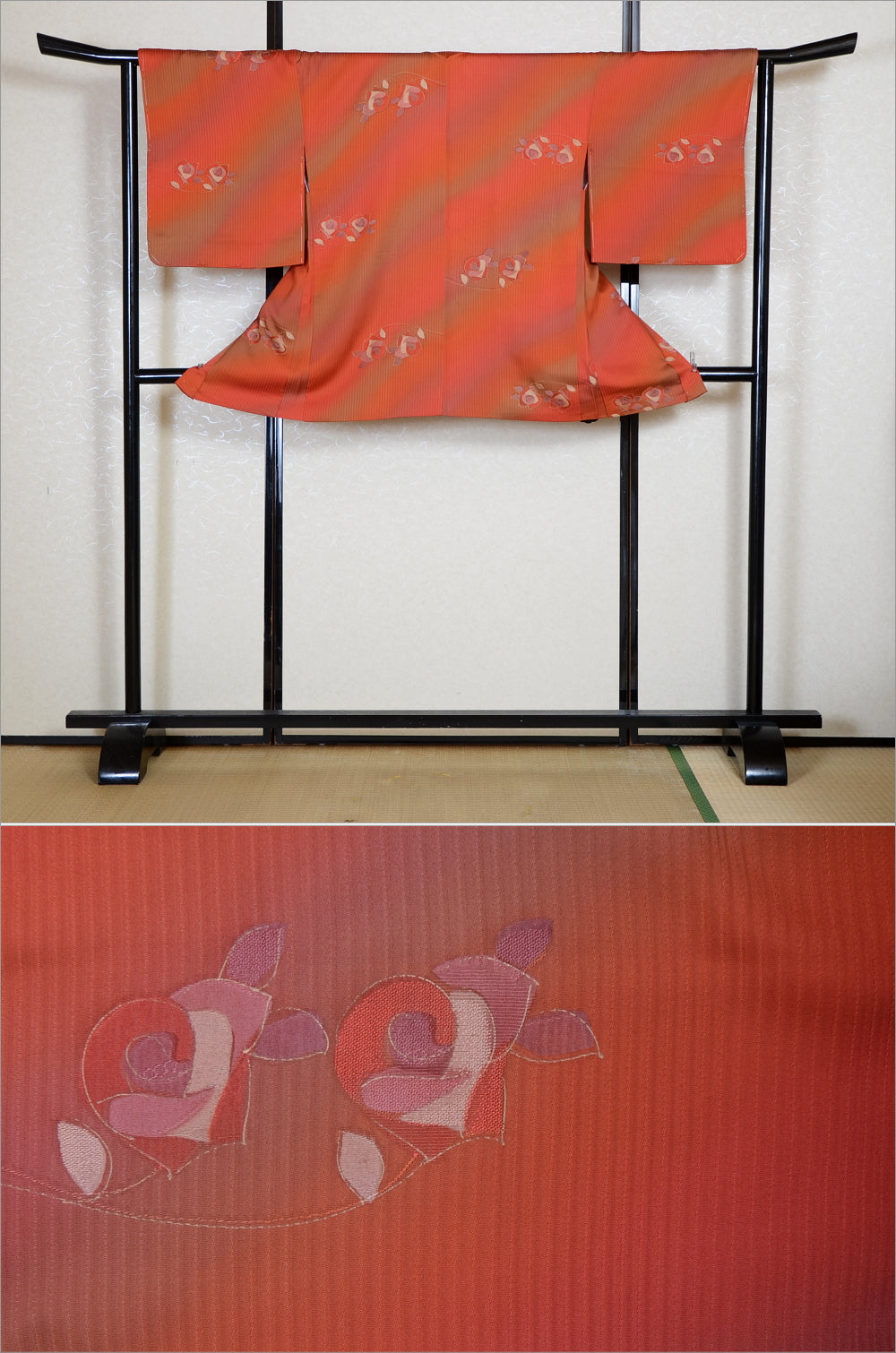 | This item is from a kimono auction where only a limited number of professional kimono buyers can participate. It is a one of a kind. Traditional kimono is likened to "wearable art" since dozens of artisans' techniques are used in one kimono. These traditional techniques and designs are breathtakingly beautiful and it is hard to find words to describe them. | |