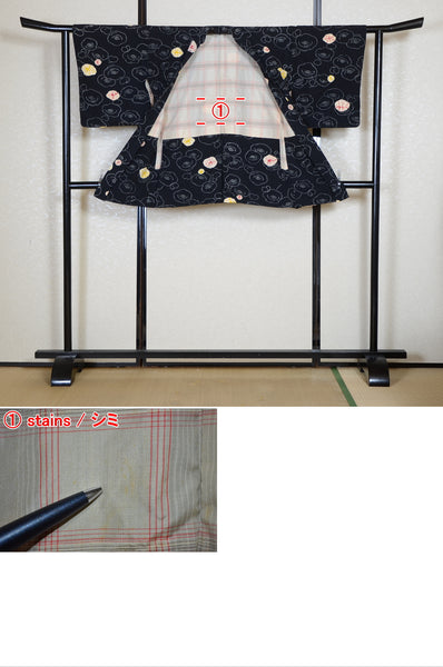 | Very good condition of all the used kimono. We can see a little signs of wear. There are small stains on it but not mind too much. You can wear it. | |