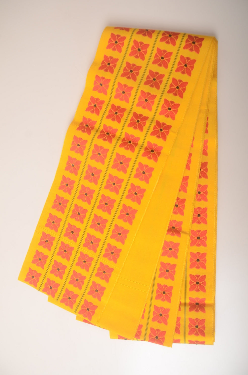 | Woven and dyed obi belts ("Han-haba obi" in Japanese) have rich colors and are of higher quality compared to flat obi belts. They are not too formal and can be used with both yukata kimonos and Japanese kimonos. | |