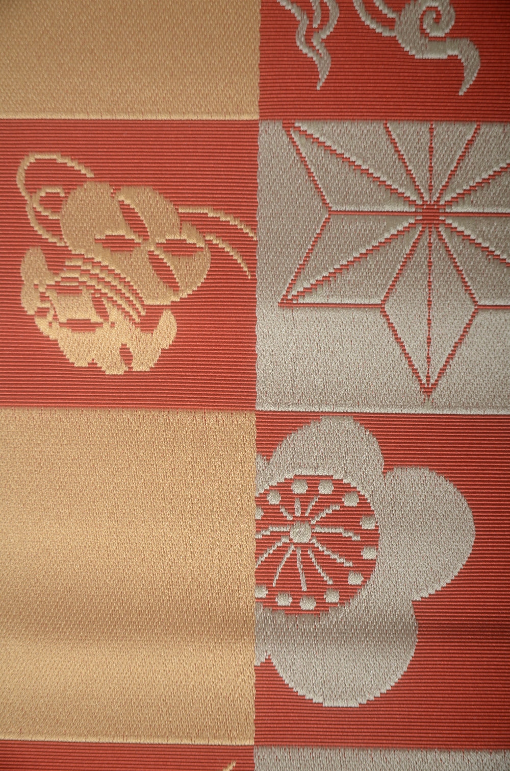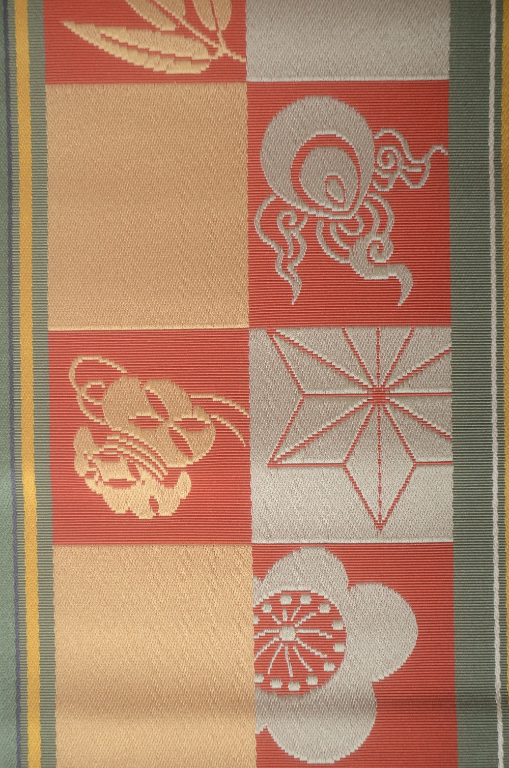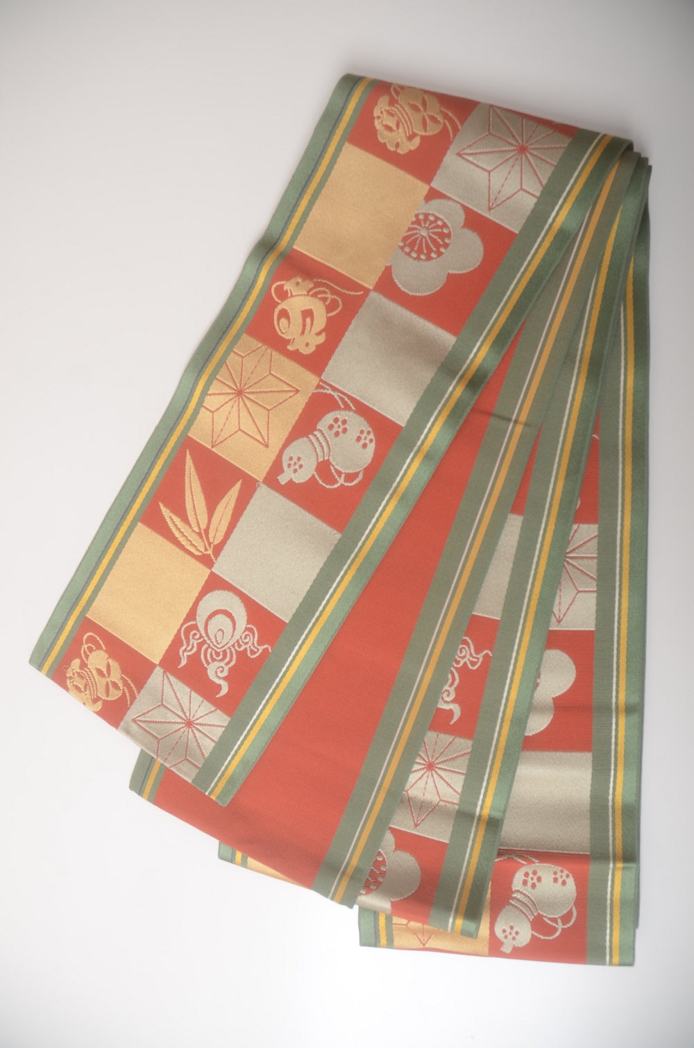 | Woven and dyed obi belts ("Han-haba obi" in Japanese) have rich colors and are of higher quality compared to flat obi belts. They are not too formal and can be used with both yukata kimonos and Japanese kimonos. | |