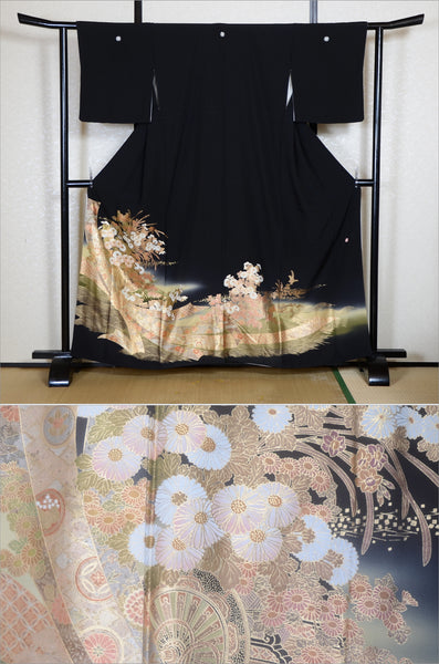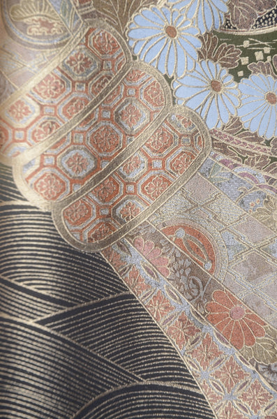 | This item is from a kimono auction where only a limited number of professional kimono buyers can participate. It is a one of a kind. Traditional kimono is likened to "wearable art" since dozens of artisans' techniques are used in one kimono. These traditional techniques and designs are breathtakingly beautiful and it is hard to find words to describe them. | |