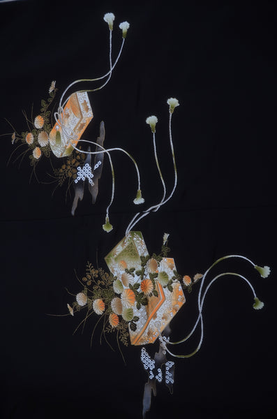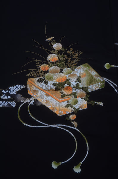 | This item is from a kimono auction where only a limited number of professional kimono buyers can participate. It is a one of a kind. Traditional kimono is likened to "wearable art" since dozens of artisans' techniques are used in one kimono. These traditional techniques and designs are breathtakingly beautiful and it is hard to find words to describe them. | |