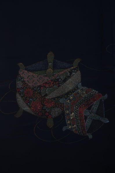 This item is from a kimono auction where only a limited number of professional kimono buyers can participate. It is a one of a kind. Traditional kimono is likened to "wearable art" since dozens of artisans' techniques are used in one kimono. These traditional techniques and designs are breathtakingly beautiful and it is hard to find words to describe them.