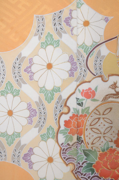 This item is from a kimono auction where only a limited number of professional kimono buyers can participate. It is a one of a kind. Traditional kimono is likened to "wearable art" since dozens of artisans' techniques are used in one kimono. These traditional techniques and designs are breathtakingly beautiful and it is hard to find words to describe them.