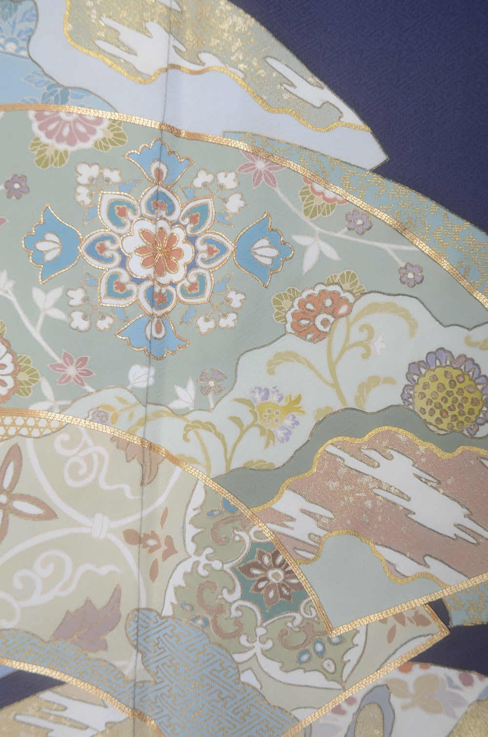 | This item is from a kimono auction where only a limited number of professional kimono buyers can participate. It is a one of a kind. Traditional kimono is likened to "wearable art" since dozens of artisans' techniques are used in one kimono. These traditional techniques and designs are breathtakingly beautiful and it is hard to find words to describe them. | ||||||||||||