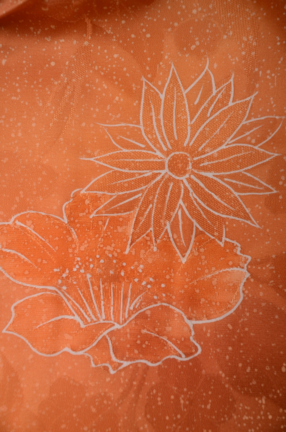 I bought this kimono as a wedding present for a close friend. I thought that was a great idea. But when it arrived I was amazed. The kimono is incredible beautiful. Even it’s second hand, it’s clear it was handled with lots of care. It only had a bit of weird smell for being in a closed space, but it just needed a few days on a hanger to remove it.