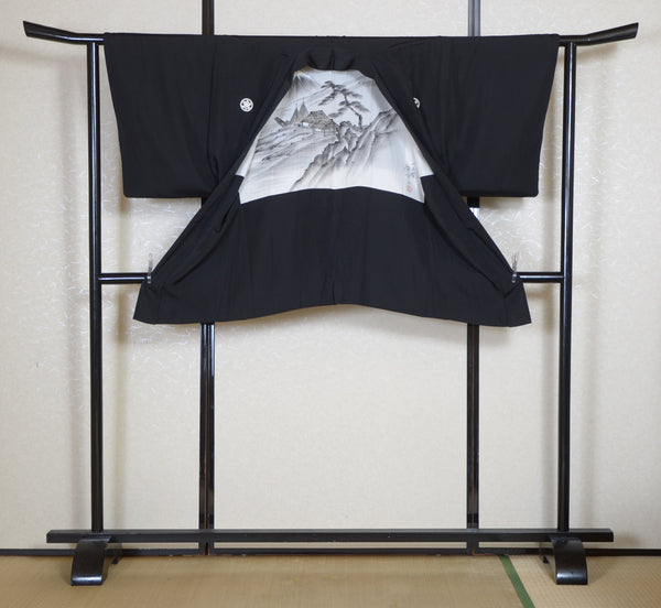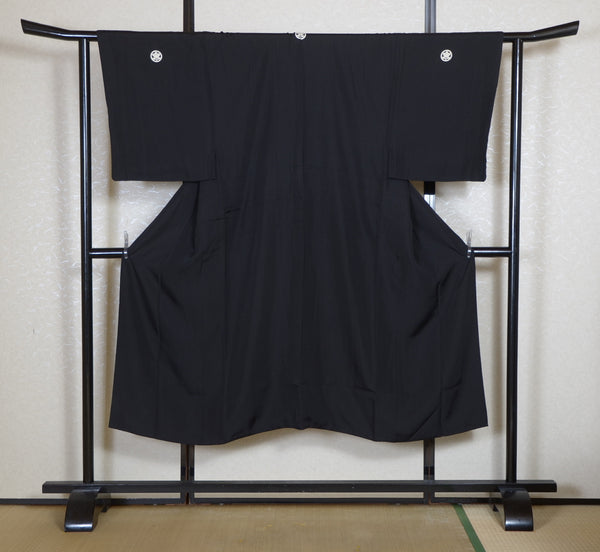 | This item is from a kimono auction where only a limited number of professional kimono buyers can participate. The kimono jacket, traditional kimono and hakama set is suitable for people who are interested in samurai, Bushi-do, cosplaying or for those who are looking for costumes for a play or formal ceremonies. This is one of the most formal traditional kimono for men and is traditionally used in formal ceremonies. |