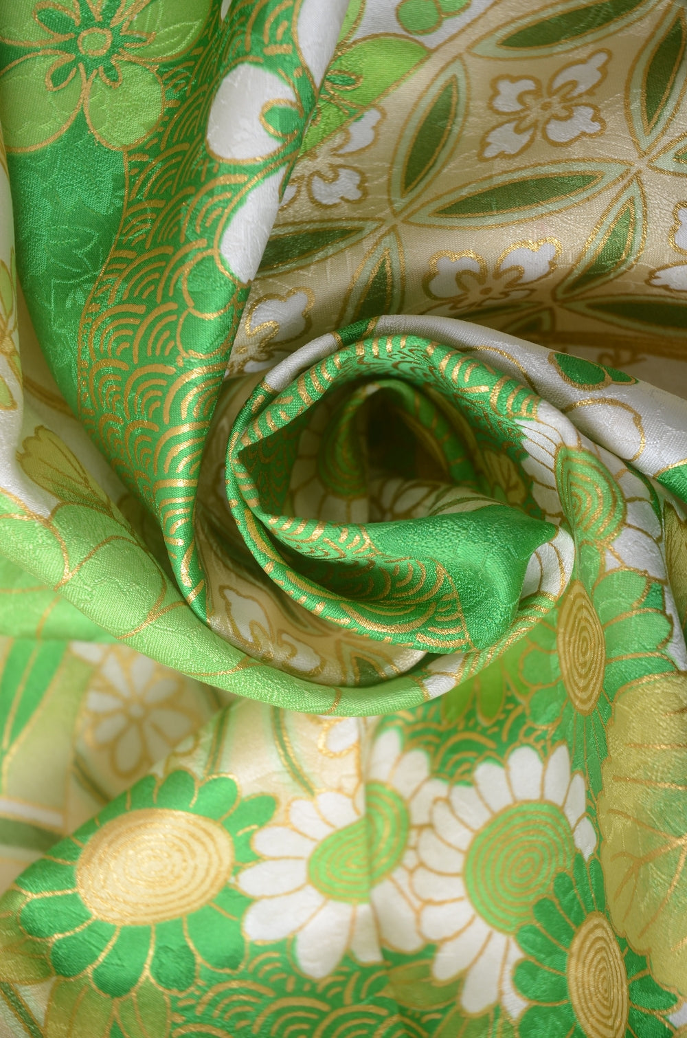 All techniques (weaving, dyeing, embroidery) are great. The patterns and fabrics are both wonderful. In addition, it is kimono which we selected in our shop standard. Reference price (Brand new): over 3000US$