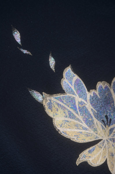 | This item is from a kimono auction where only a limited number of professional kimono buyers can participate. It is a one of a kind. Traditional kimono is likened to "wearable art" since dozens of artisans' techniques are used in one kimono. These traditional techniques and designs are breathtakingly beautiful and it is hard to find words to describe them. | |