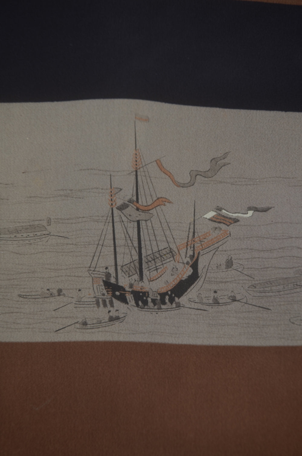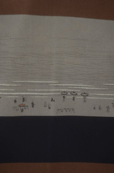 | This item is from a kimono auction where only a limited number of professional kimono buyers can participate. It is a one of a kind. A kimono jacket or 'haori' in Japanese is a jacket worn over the kimono to protect your kimono from dust and can also help to keep you warm. It is worn as a jacket for more formal occasions and don't have to be taken off when indoors. |