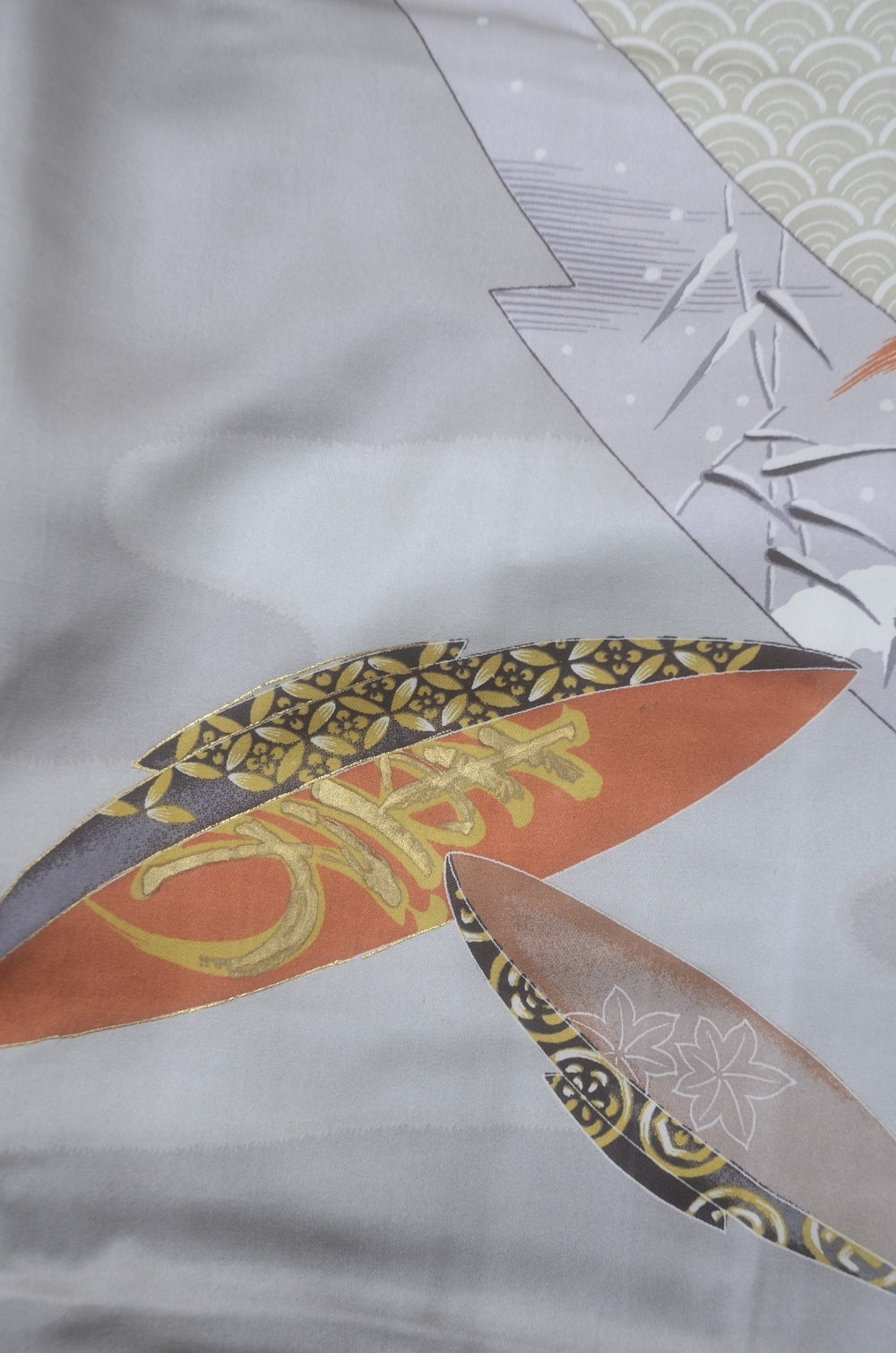 | This item is from a kimono auction where only a limited number of professional kimono buyers can participate. It is a one of a kind. A kimono jacket or 'haori' in Japanese is a jacket worn over the kimono to protect your kimono from dust and can also help to keep you warm. It is worn as a jacket for more formal occasions and don't have to be taken off when indoors. |