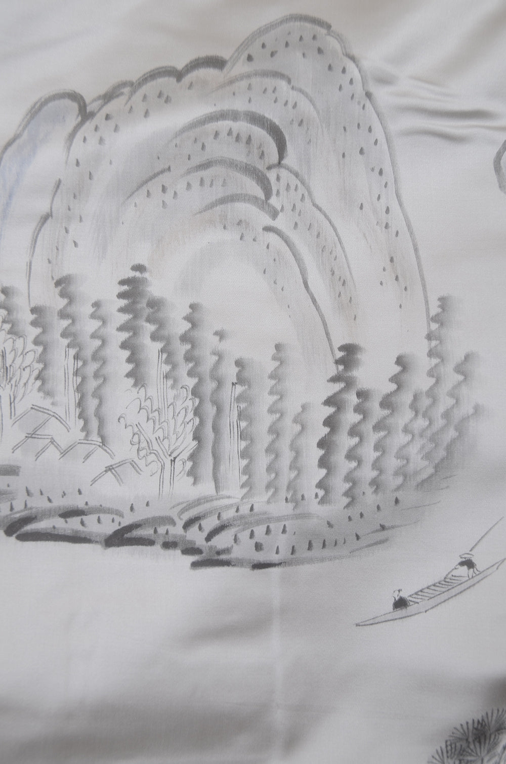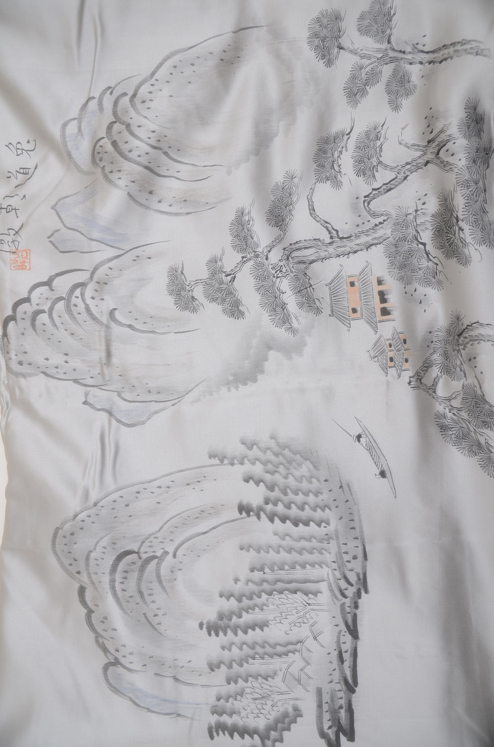 | This item is from a kimono auction where only a limited number of professional kimono buyers can participate. It is a one of a kind. A kimono jacket or 'haori' in Japanese is a jacket worn over the kimono to protect your kimono from dust and can also help to keep you warm. It is worn as a jacket for more formal occasions and don't have to be taken off when indoors. |