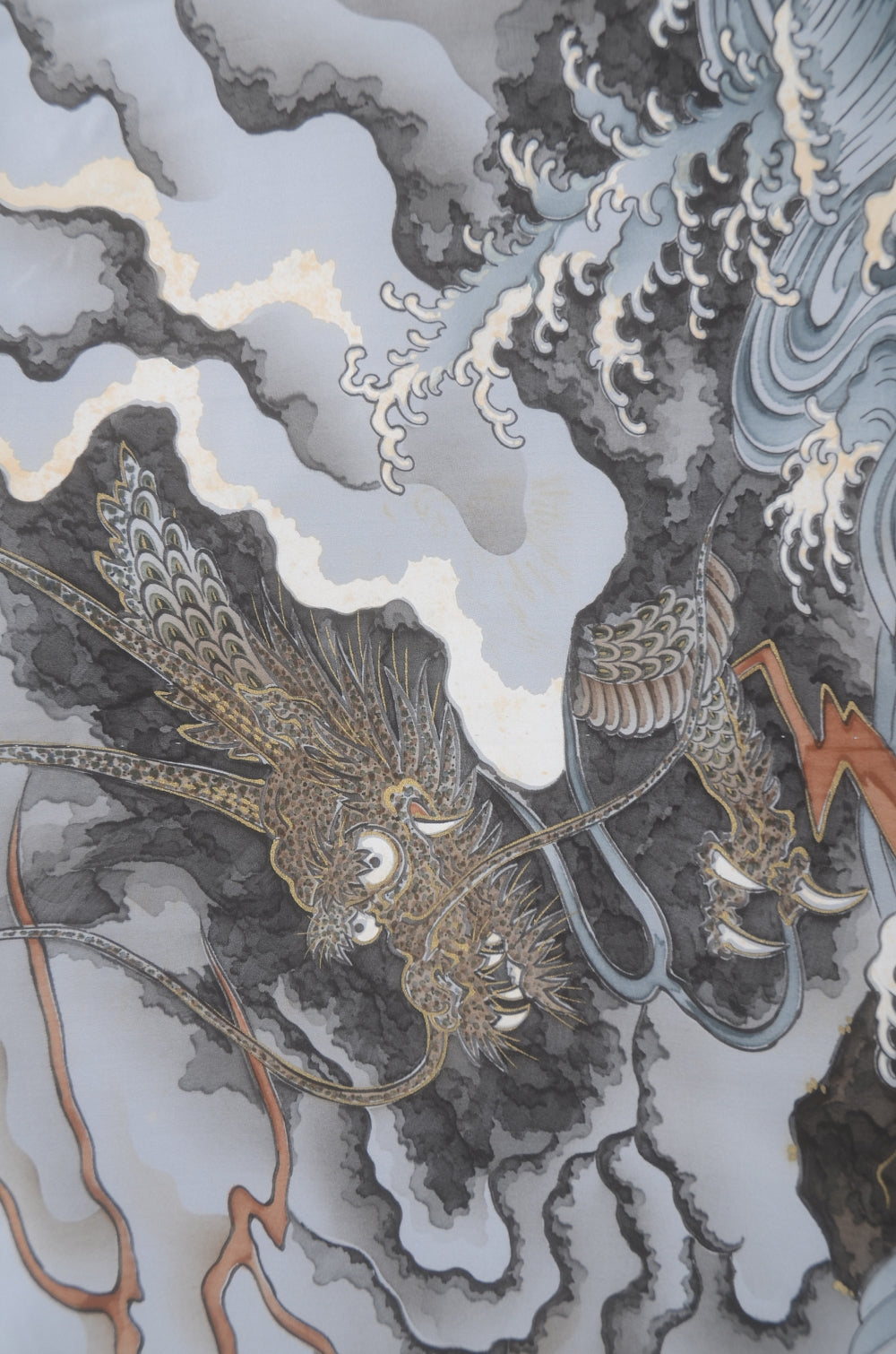 I love these Haori, the craftsmanship is supreme and so comfortable. This one is a bit thicker and is great for warmth, while still be soft and flowy. The dragon is adorable and a little quirky, which I love. Amazing customer service as always too